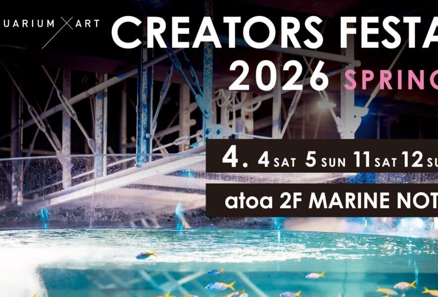 神戸市中央区の水族館「AQUARIUM×ART átoa(アトア)」で、クリエイターによる物販イベント「アトアクリエイターズフェスタ 2026 SPRING」が開催される。2026年4月4日・5日、4月11日・12日の計4日間の予定。