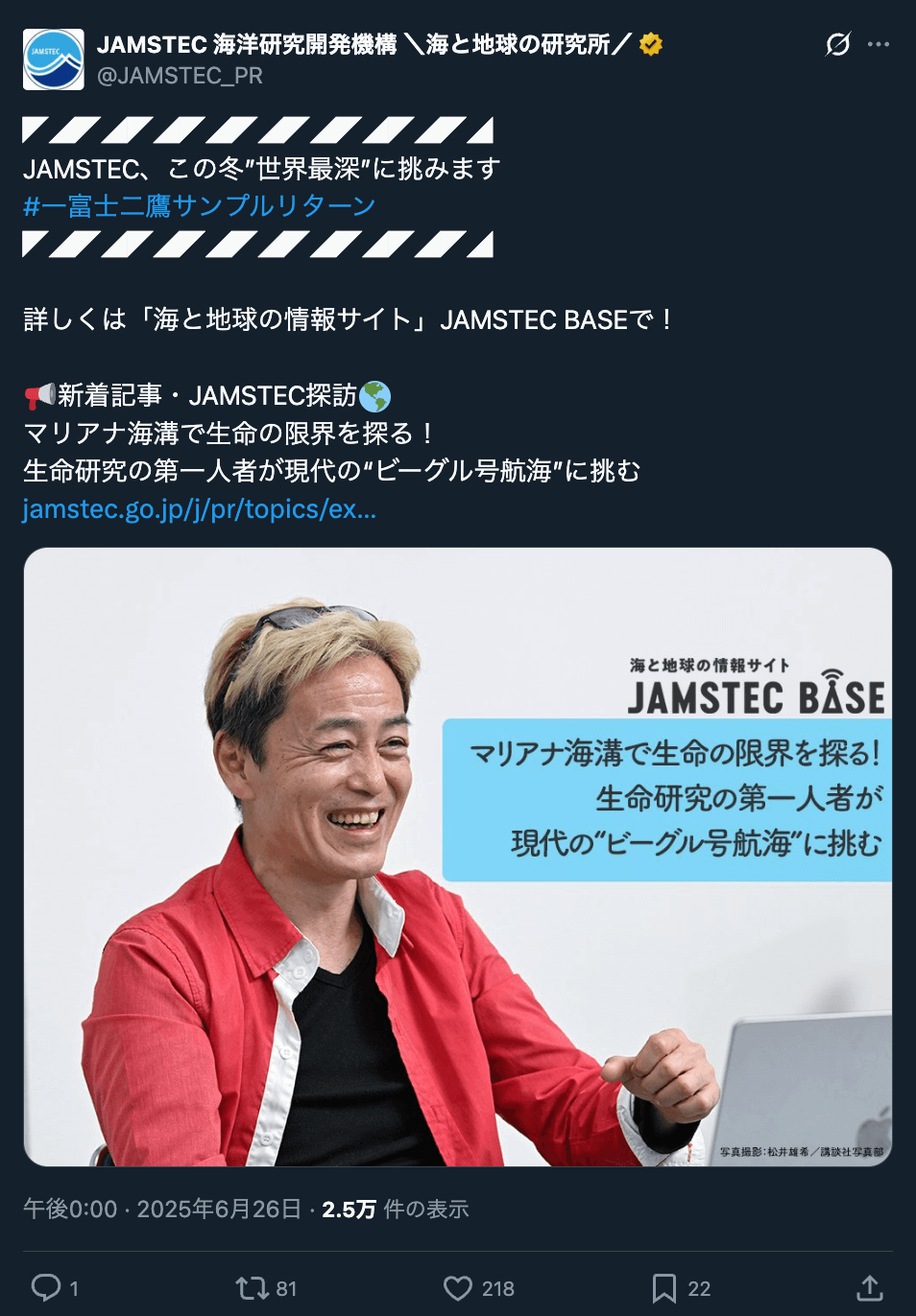出典:http://twitter.com/JAMSTEC_PR/status/1938069720256880920/