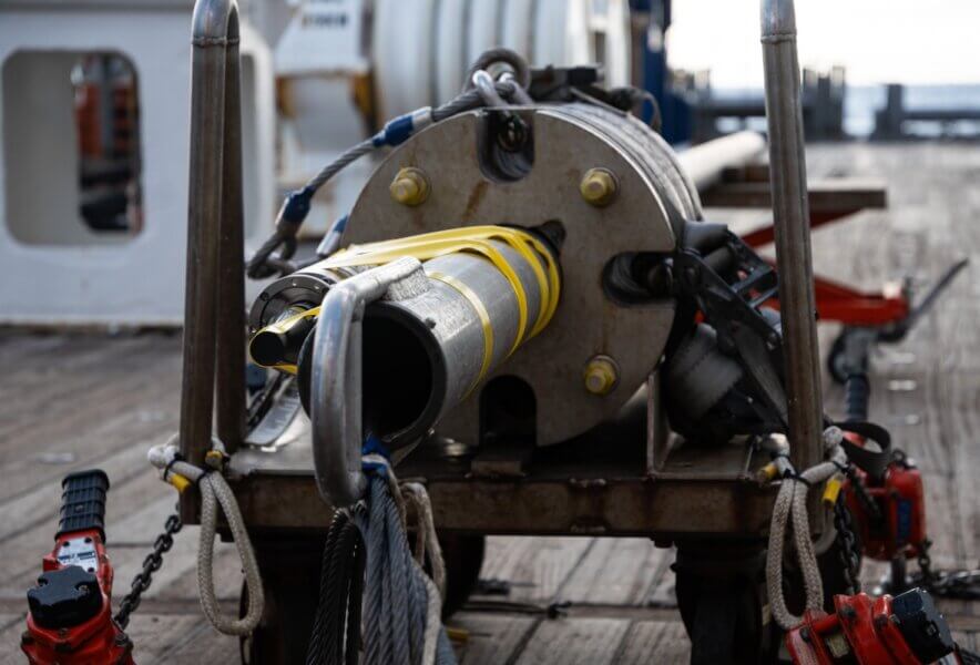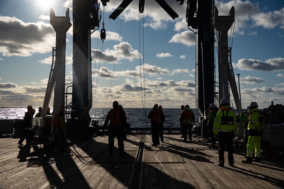 昨日は荒天で中止になったピストンコアラーの2回目、今日はやるぞー!と朝8時からクルーがどっさり集結。甲板での作業は、船員さんと、研究者をサポートする技術チームとがおこないます。もちろん計画を立てるのは研究チーム。それぞれが、それぞれの役割を果たす姿には一切の迷いがなく、その仕事ぶりを見ていると胸がスカッとする思いです。