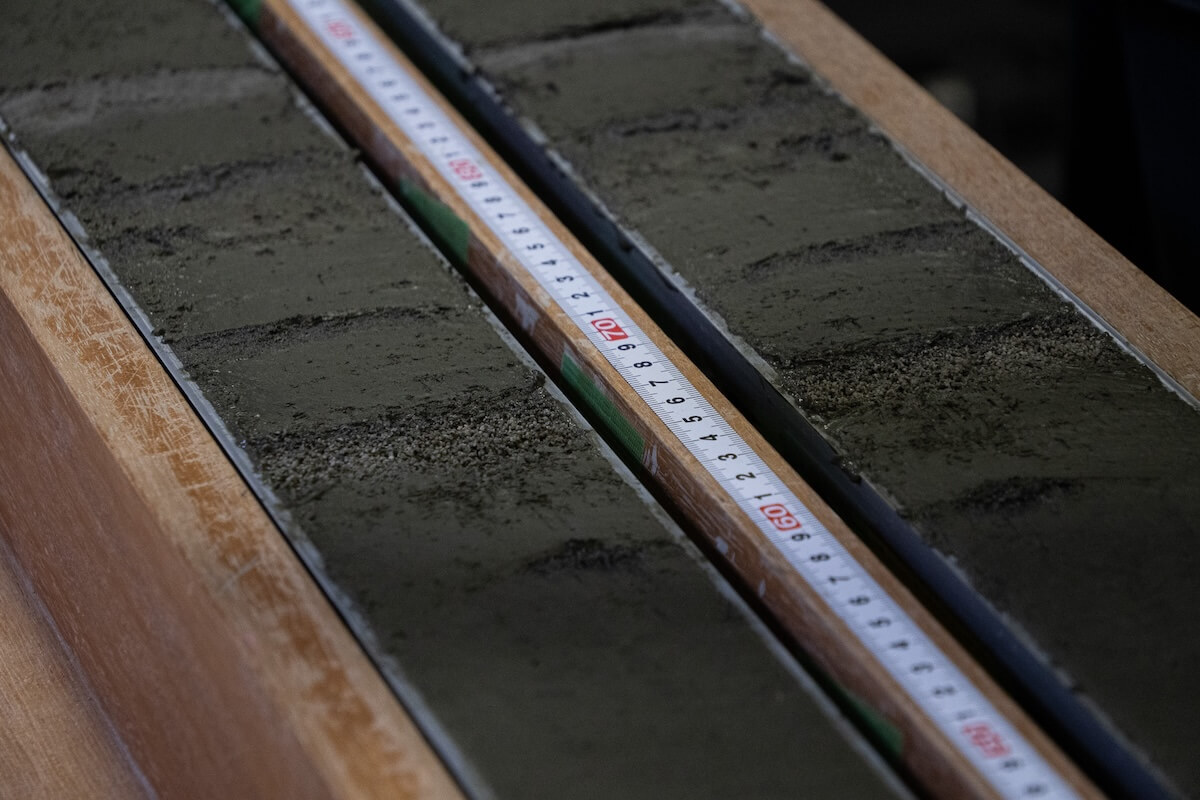 この“丈夫で長い筒”で採るコア、半分に割ってみると思っていた以上におもしろい…..!