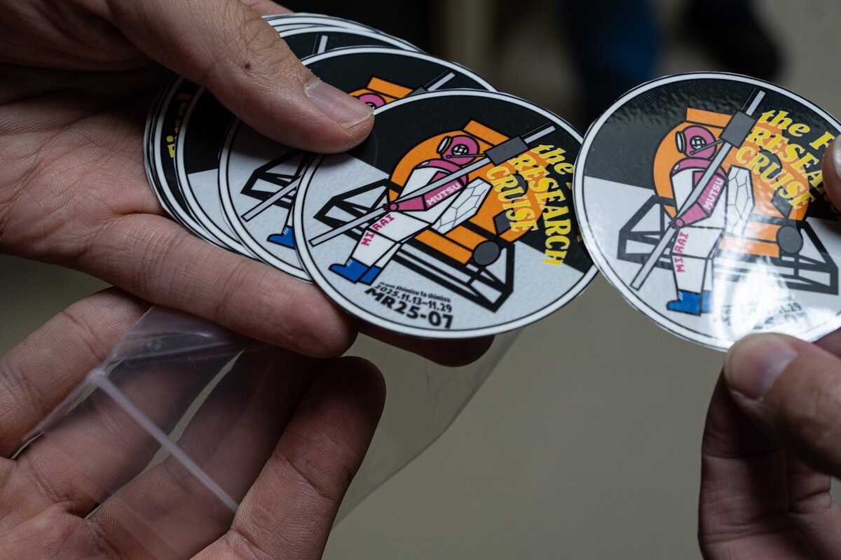 このごろは、機関部のゆかいな仲間たちを訪ねては居座っているのですが、クルーのTさんが「航海ごとのステッカーを趣味で作っている」というので見せてもらったところ、趣味の範囲を超えたクオリティのものが出てきて、三枝師匠(当時)ばりに椅子から転げ落ちそうになりました。