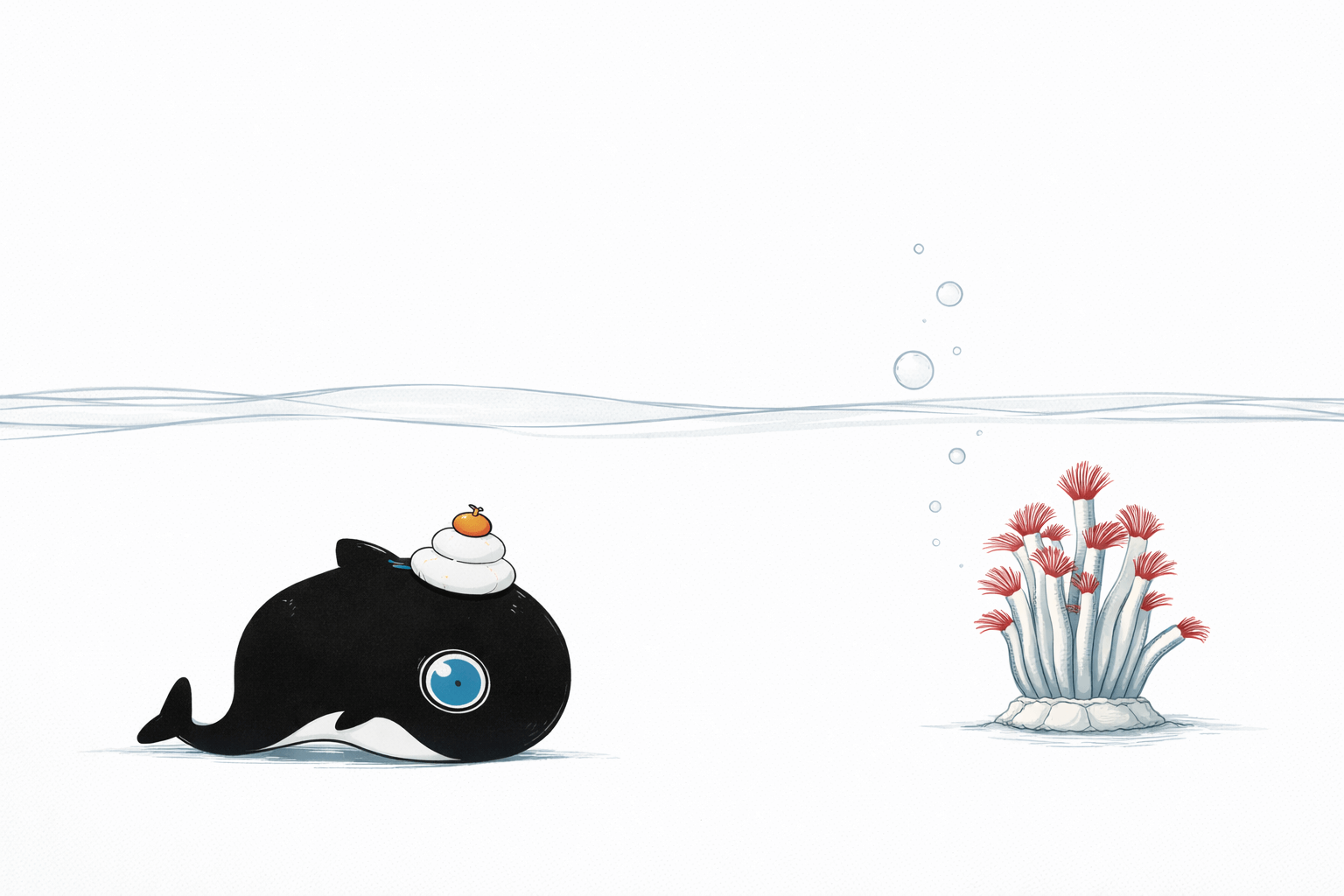 「キャラクターの造形は変えずに、フカメディアの世界観を踏襲してください」と前提条件をつけたうえで、「深海生物のチューブワームを束ねた門松っぽいものも添えてください」とムチャ振りしたら出てきたのが、こちらです。